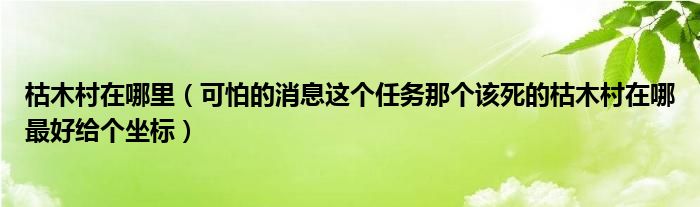 关于枯木村在哪里,可怕的消息这个任务那个该死的枯木村在哪最好给个坐标这个很多人还不知道,今天小六来为大家解答以上的问题,现在让我们一起来看看吧!