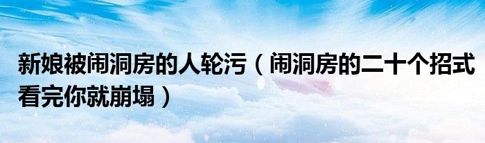 关于新娘被闹洞房的人轮污,闹洞房的二十个招式看完你就崩塌这个很多人还不知道,今天小六来为大家解答以上的问题,现在让我们一起来看看吧!