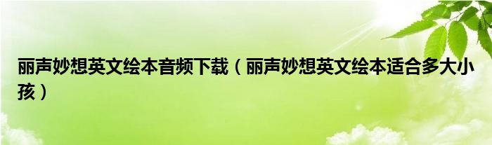 关于丽声妙想英文绘本音频下载,丽声妙想英文绘本适合多大小孩这个很多人还不知道,今天小六来为大家解答以上的问题,现在让我们一起来看看吧!