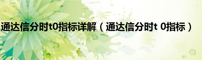 通达信分时t0指标详解(通达信分时t 0指标),时间不够了,求直接说重点!