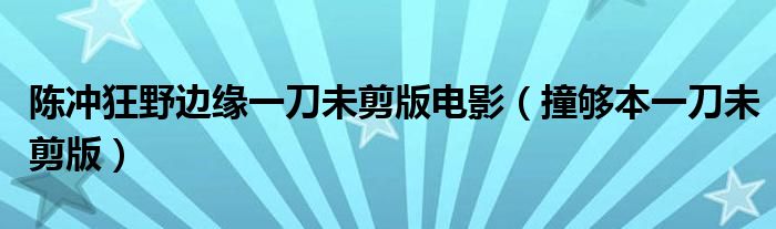 大家好,乐乐来为大家解答以下的问题,关于陈冲狂野边缘一刀未剪版电影,撞够本一刀未剪版这个很多人还不知道,那么今天让乐乐带着大家一起来看看吧!