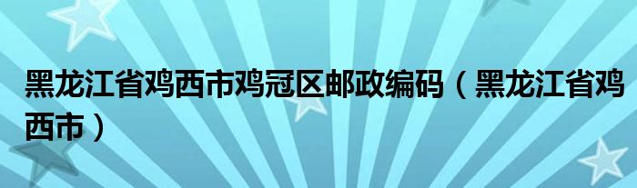 大家好,乐乐来为大家解答以下的问题,关于黑龙江省鸡西市鸡冠区邮政编码,黑龙江省鸡西市这个很多人还不知道,那么今天让乐乐带着大家一起来看看吧!