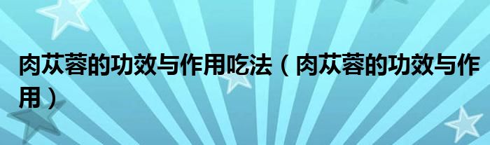 大家好,乐乐来为大家解答以下的问题,关于肉苁蓉的功效与作用吃法,肉苁蓉的功效与作用这个很多人还不知道,那么今天让乐乐带着大家一起来看看吧!