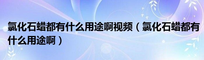 大家好,乐乐来为大家解答以下的问题,关于氯化石蜡都有什么用途啊视频,氯化石蜡都有什么用途啊这个很多人还不知道,那么今天让乐乐带着大家一起来看看吧!