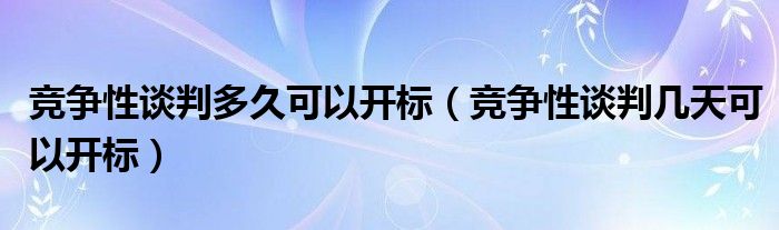 竞争性谈判多久可以开标(竞争性谈判几天可以开标),快急疯了,求给个思路吧!